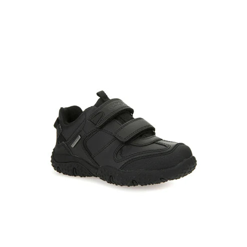 These Geox Baltic boys' black leather school shoes combine durability with comfort, featuring Amphibiox technology to keep feet dry during rainy days.