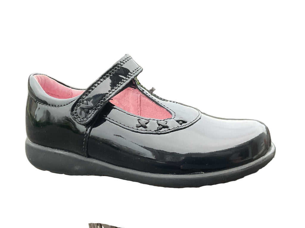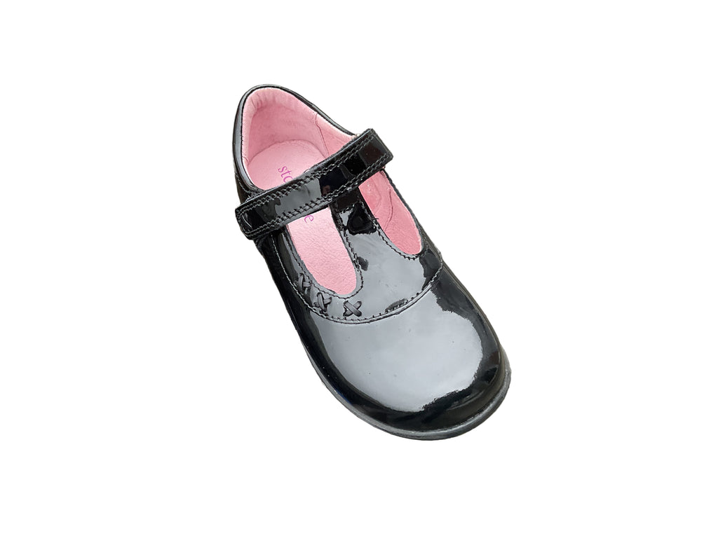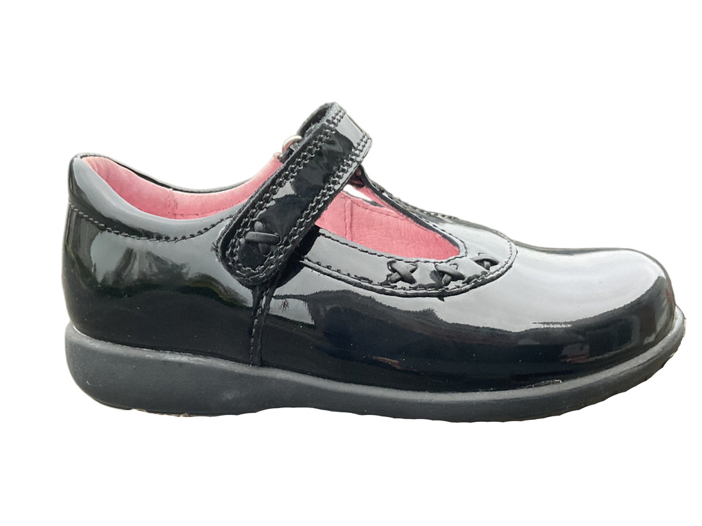 The Start Rite Trinity shoe, crafted from durable black patent leather, delivers lasting comfort and support for busy school days.